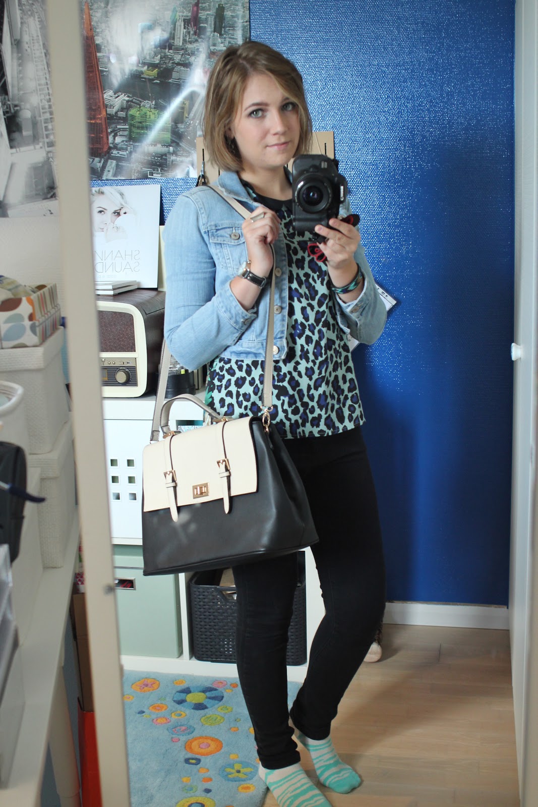 I was just poppin' out to see some fellow students working at a project in my home town. Decided to go with casual black jeans but a nice and colourful top I haven't worn in ages! Yes, I'm also wearing socks that colour-match my top. I just wore some black sneakers with this look. The black and white bag I bought in Italy a few weeks ago literally goes with everything and it can fit my laptop in there. YAY!