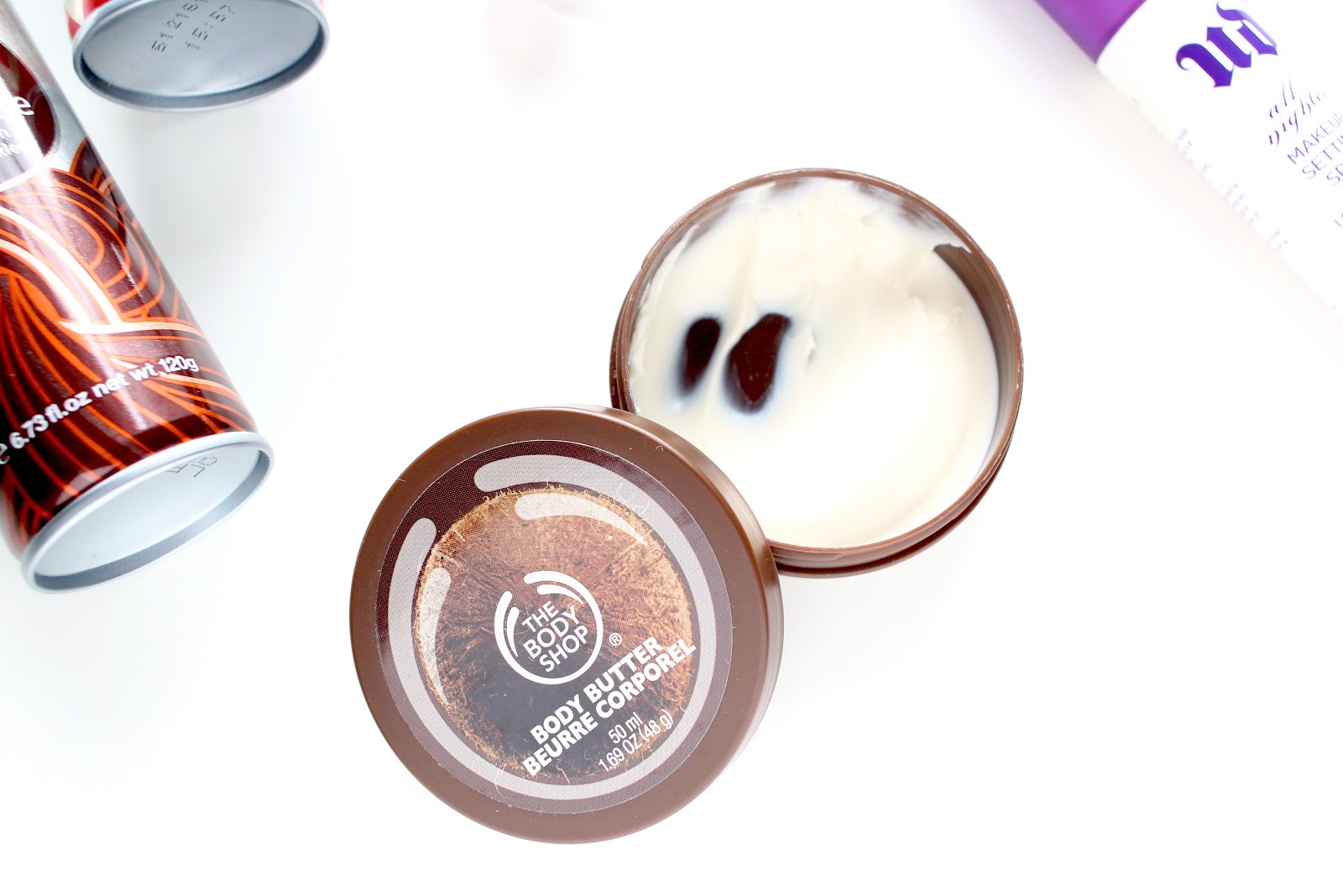 I had never tried any body butters from The Body Shop until I picked up this Coconut Body Butter, along with the Shea Butter one. This one is very oily, sticky and really doesn't sink into my skin as it should. I very much prefer the Shea Butter, which is soft, rich and moisturizes my skin so well, in stead of making it tacky. Such a shame because I really do love the smell of this!